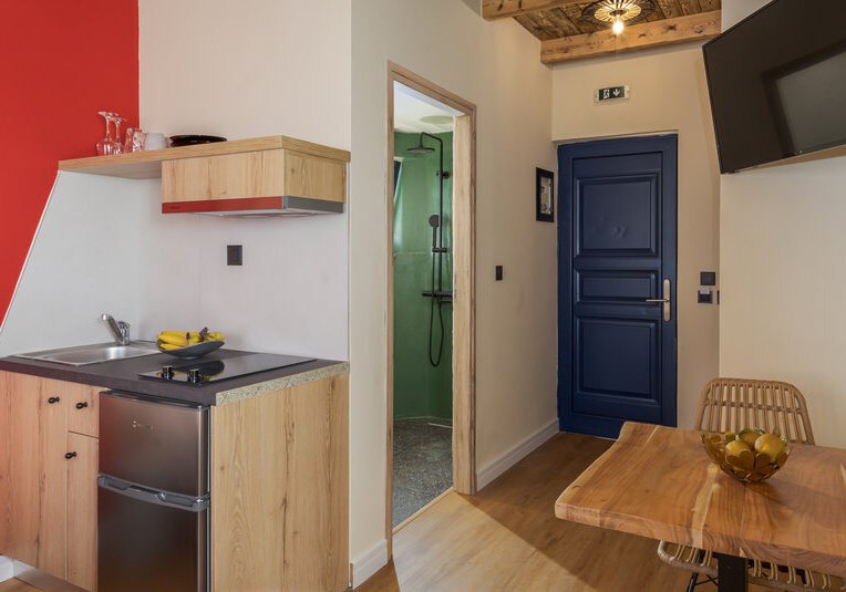 Eure Unterkunft setzt auf praktische Details: Kitchenette für schnelle Snacks, Wasserkocher für den ersten Kaffee, individuell regulierbare Klimaanlage und Heizung für Euer Wohlfühlklima. WLAN und Flatscreen-TV sind an Bord, der geflieste Boden hält alles angenehm pflegeleicht. Auf dem Balkon holt Ihr frische Luft in den Tag, der Safe verwahrt Wertsachen. Highlight: Studios mit Kitchenette – flexibel frühstücken, unkompliziert snacken.