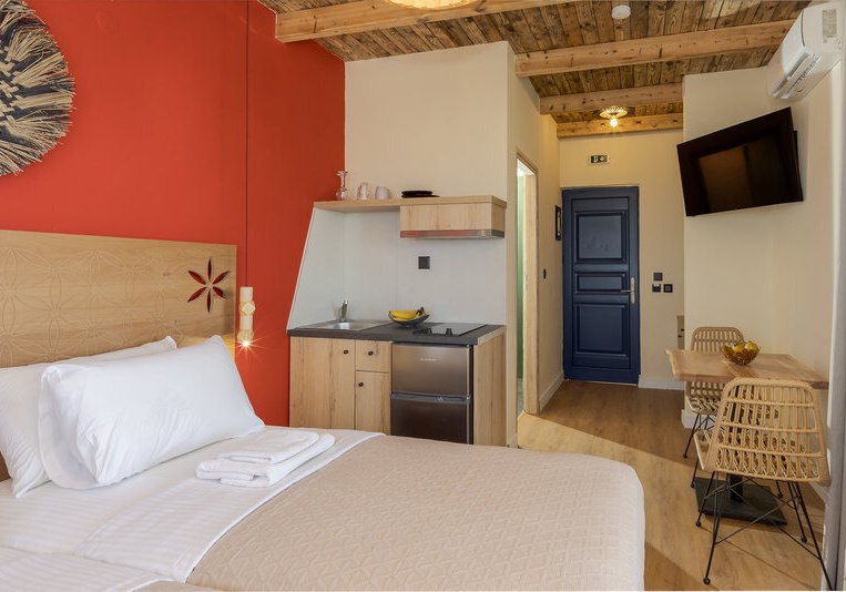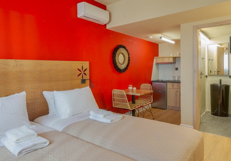 „Driades Apartments empfiehlt sich für Euch, wenn Ihr eine kompakte, 2024 renovierte Basis mit Pool, Kitchenette und kostenlosem WLAN sucht – ruhig genug mit 2 km Abstand zum Trubel und klaren Wegen zu Strand und Zentrum.“