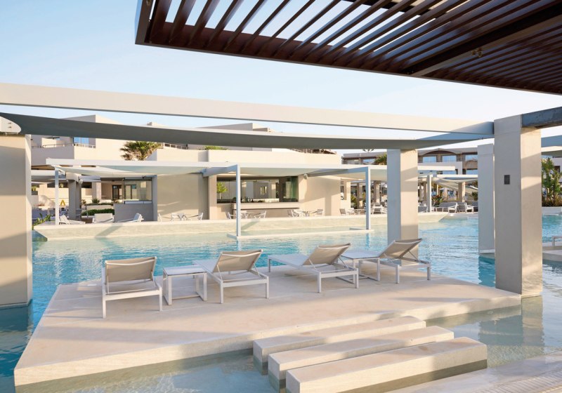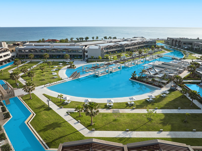 Die Anlage umfasst 344 Zimmer und Suiten, eine großzügige Empfangshalle mit Rezeption sowie kostenloses WLAN. Die weitläufige Swimmingpool-Landschaft bildet das Herzstück, Sonnenliegen und Schirme stehen am Pool und am Strand bereit. Für Kinder gibt es einen separaten Pool und einen Spielplatz; Babybetten sind auf Anfrage erhältlich, Babysitting wird gegen Gebühr angeboten.