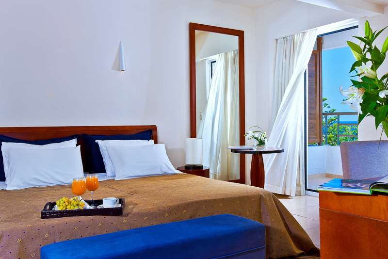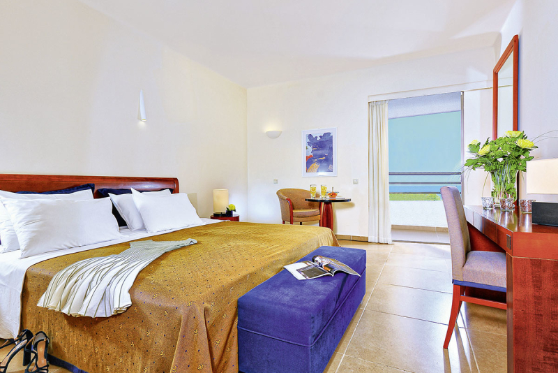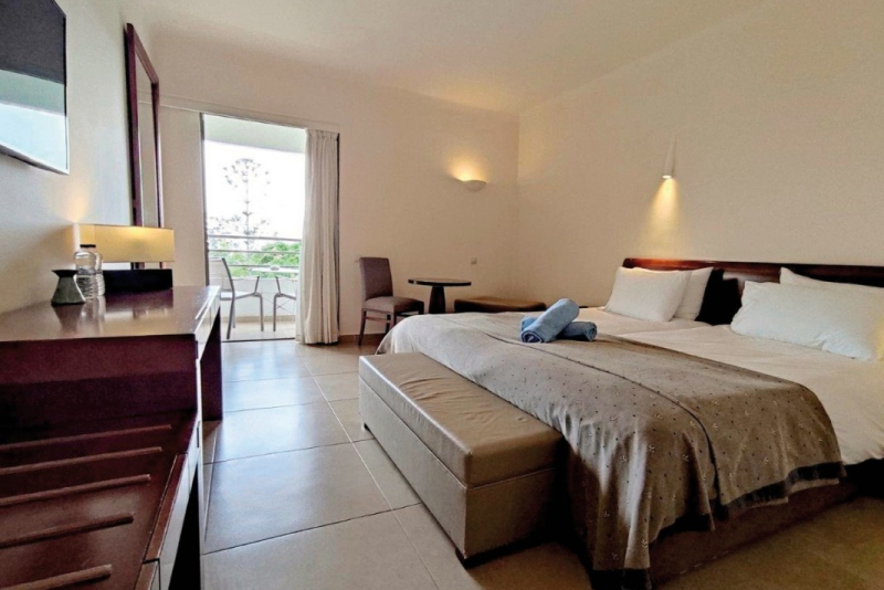 Die Zimmer sind modern und komfortabel ausgestattet und variieren von Standard-Doppelzimmern bis hin zu geräumigen Familienzimmern mit zwei Schlafzimmern. Alle Zimmer verfügen über Bad oder Dusche/WC, Flachbildschirm, Föhn, Kaffee-/Teezubereiter, Minikühlschrank und kostenfreies WLAN. Einige Zimmer bieten seitlichen Meerblick.