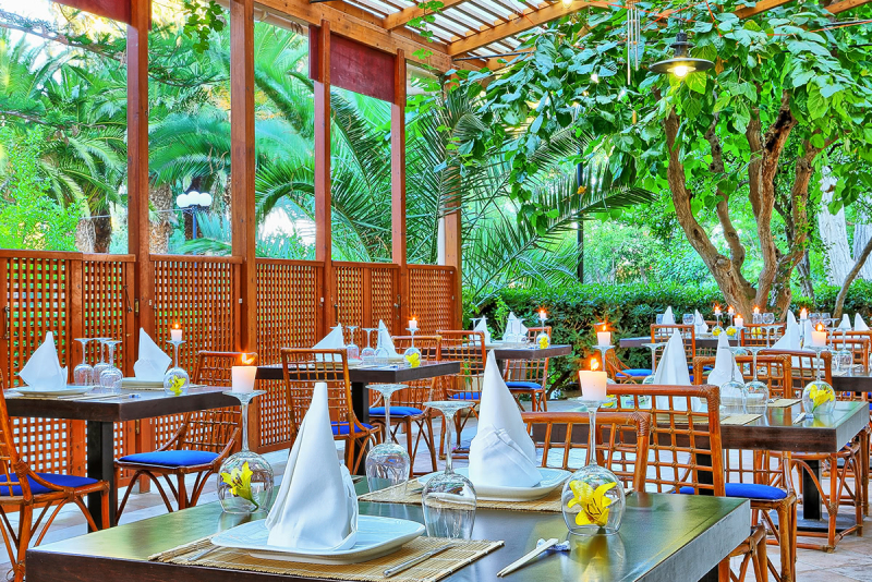 Das Hotel verfügt über 5 Restaurants und 5 Bars. Wählen Sie zwischen Halbpension und All-Inclusive, mit Buffets zum Frühstück, Mittag- und Abendessen, und genießen Sie vegane, vegetarische und gluten- und laktosefreie Optionen. Höhepunkte sind unter anderem das griechische À-la-carte-Restaurant 'Ambrosia' und das italienische 'Al Capone'.Ausstattung