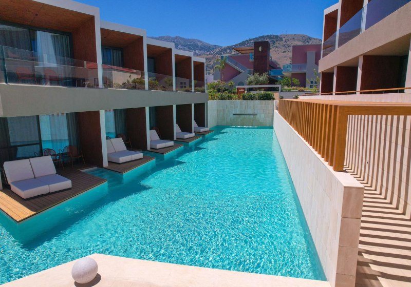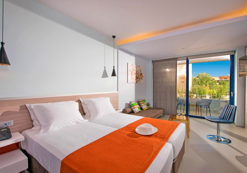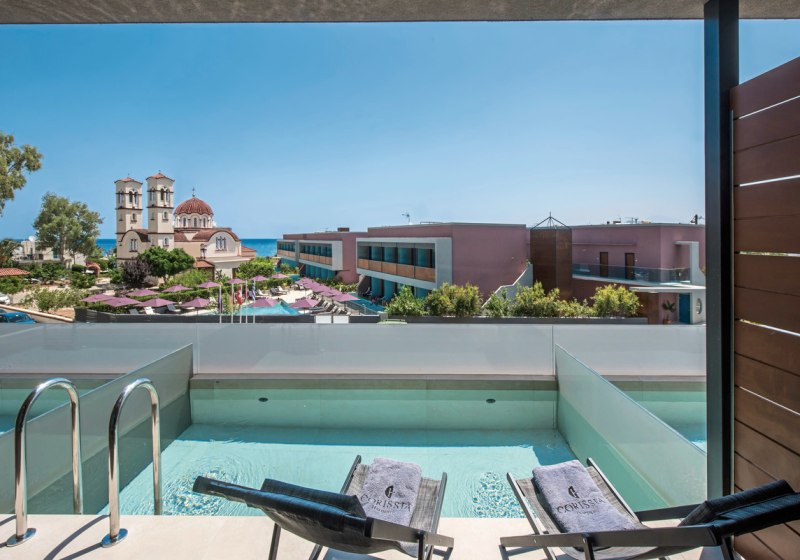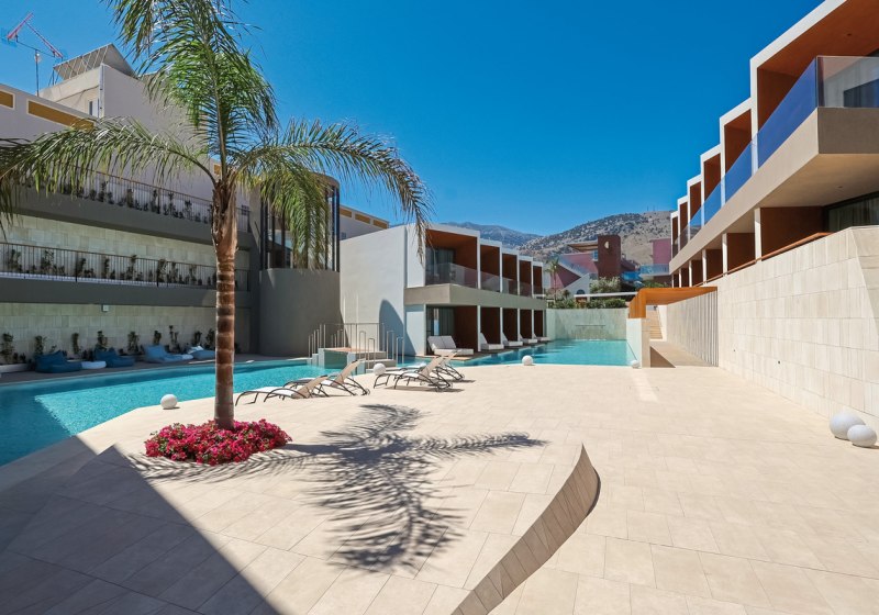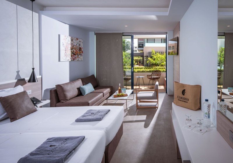 Harmony Boutique Resort verbindet adults-friendly Ruhe, kurze Wege und Strandnähe mit Zugang zum Corissia Park. Kulinarisch mischt Ihr À-la-carte-Genuss mit Buffetdynamik, ergänzt um Bars mit Charakter. Die Zimmer reichen vom Meerblick bis zum beheizten Privatpool.