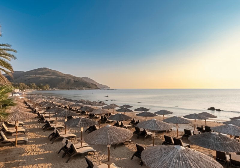 - Strandsetup: Liegen und Schirme am Strand sind praktisch organisiert.