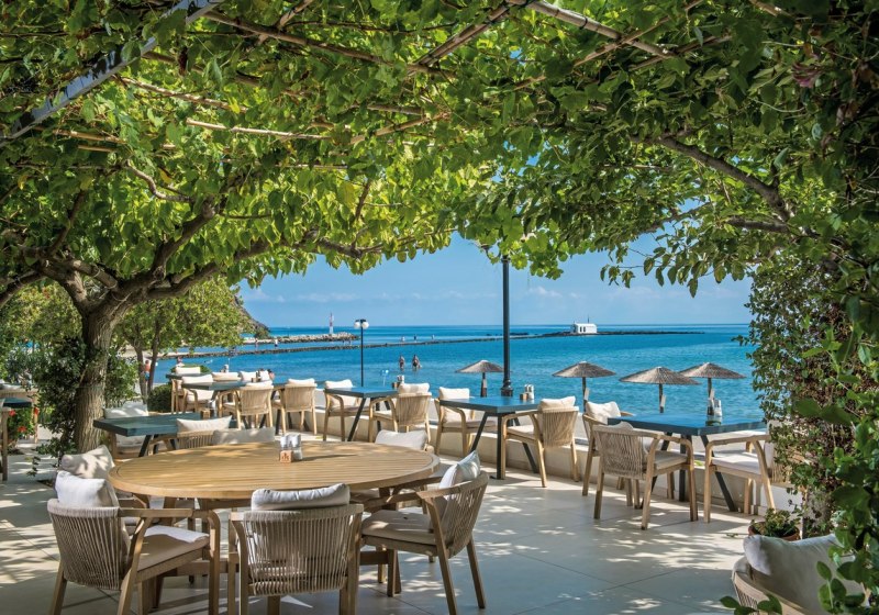 Familien profitieren vom Corissia Park mit Spielplatz und Kinderbecken; so findet Ihr leicht den passenden Takt zwischen Strand, Pool und kurzer Unterhaltung. Wer es ruhiger mag, zieht sich auf die Dachterrassenbar zurück und blickt über das Meer. Highlight: Live-Musik mit regionalem Akzent, dosiert und stimmungssicher.