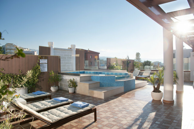 Das Halepa Hotel verfügt über eine beeindruckende Liste von Ausstattungen, darunter einen Außenpool und Kinderpool, Liegestühle, einen Wellnessbereich mit Sauna und Whirlpool, ein Fitnessstudio und ein Solarium. Es gibt auch einen Konferenzraum und ein Business-Center für Geschäftsreisende.