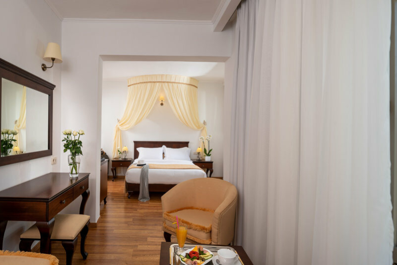 Die Zimmer im Halepa Hotel sind mit Annehmlichkeiten wie Klimaanlage, Balkon, Badezimmer mit Badewanne oder Dusche, Bügelset, Internetzugang, Minibar und sogar Kaffee-/Teezubereiter ausgestattet. Es gibt barrierefreie Zimmer und Badezimmer für Gäste mit Behinderungen. Einige Zimmer verfügen zudem über ein Wohnzimmer und eine Terrasse.