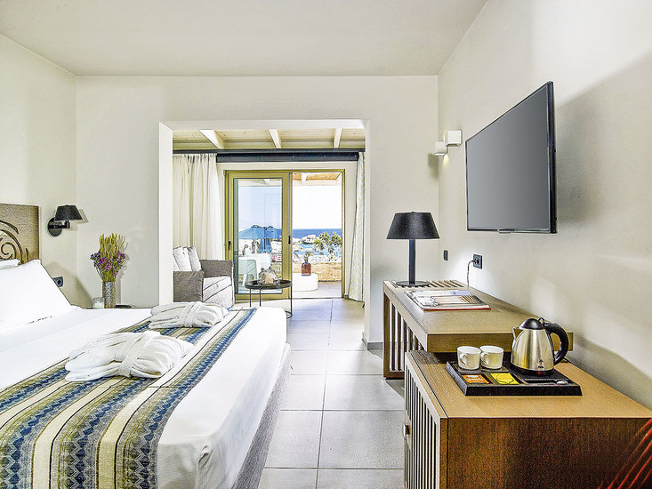 Als Gast nutzt Ihr zusätzlich die Einrichtungen des Schwesterhotels Kakkos Bay, vom Empfangsbereich bis zu Pools und Strand. 65 Zimmer und die offizielle 5-Sterne-Landeskategorie sorgen für einen gepflegten Rahmen. Hier genießt Ihr Privatsphäre, klare Strukturen und die Nähe zum Meer im Urlaub.