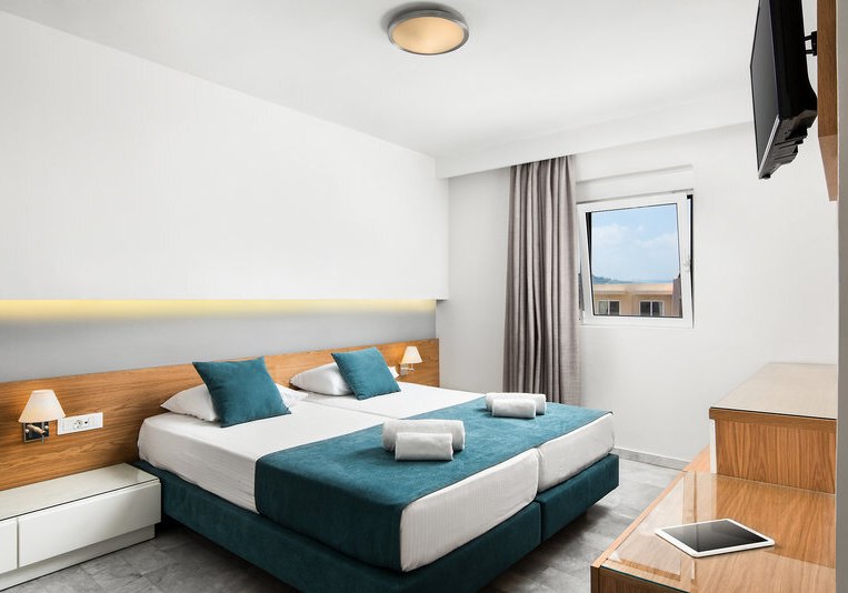 Die 62 Zimmer sind auf entspannte Aufenthalte ausgerichtet. Ihr wählt zwischen klassischen Doppelzimmern und Familienoptionen mit getrennten Schlafzimmern. Viele Einheiten bieten Balkon oder Terrasse, teils mit Meer- oder Bergblick. Für flexible Belegung stehen Zustellbett oder Schlafsofa bereit, schallisolierte Elemente erhöhen die Ruhe im Raum.