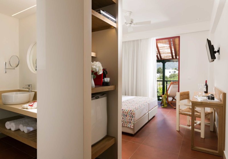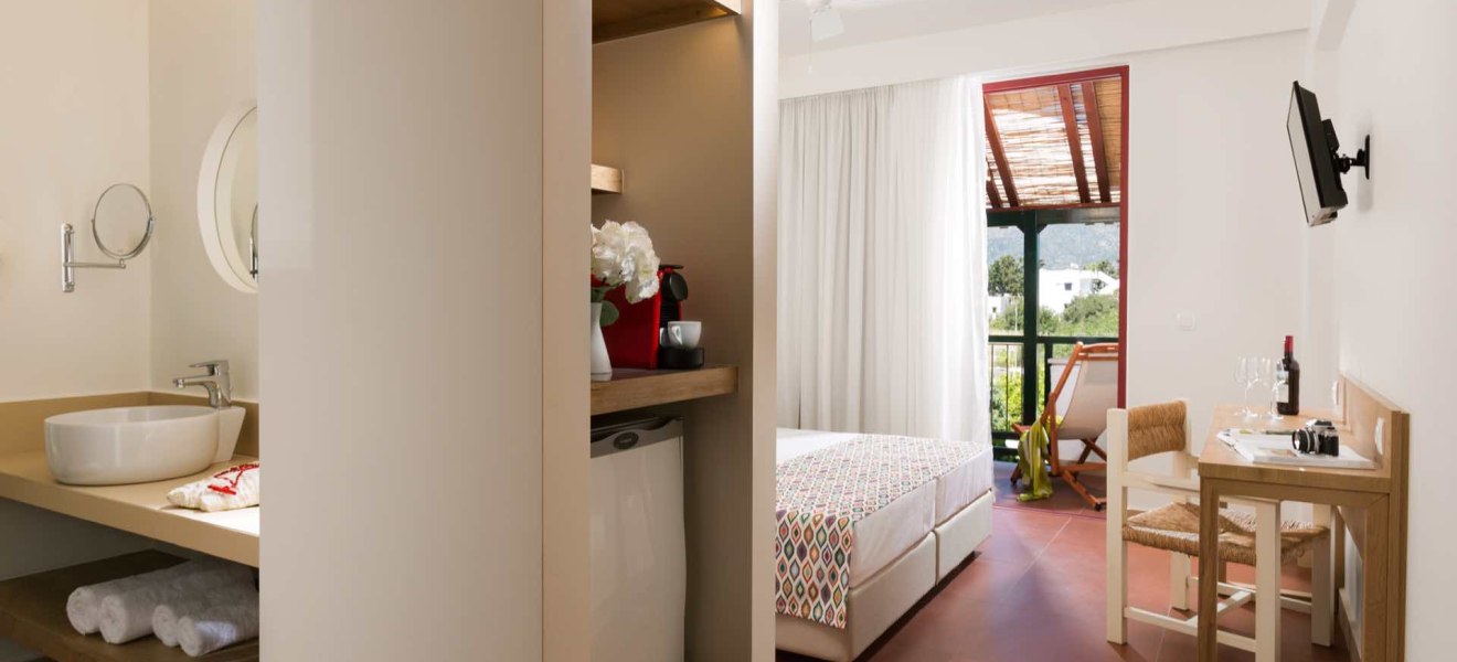 Die Zimmer sind funktional ausgestattet und auf erholsamen Schlaf ausgerichtet: Kingsize-Bett, individuell regulierbare Klimaanlage und Deckenventilator sorgen für ein stimmiges Raumklima. Dusche und WC, Pflegeprodukte sowie Föhn stehen bereit. Ein 32-Zoll-Flatscreen-TV, Telefon, Safe und WLAN bieten Verlässlichkeit im Alltag.
