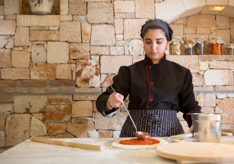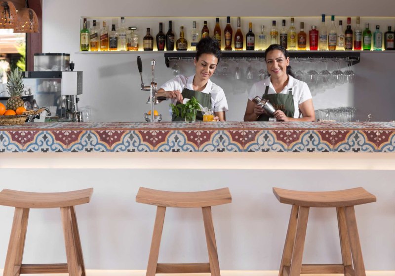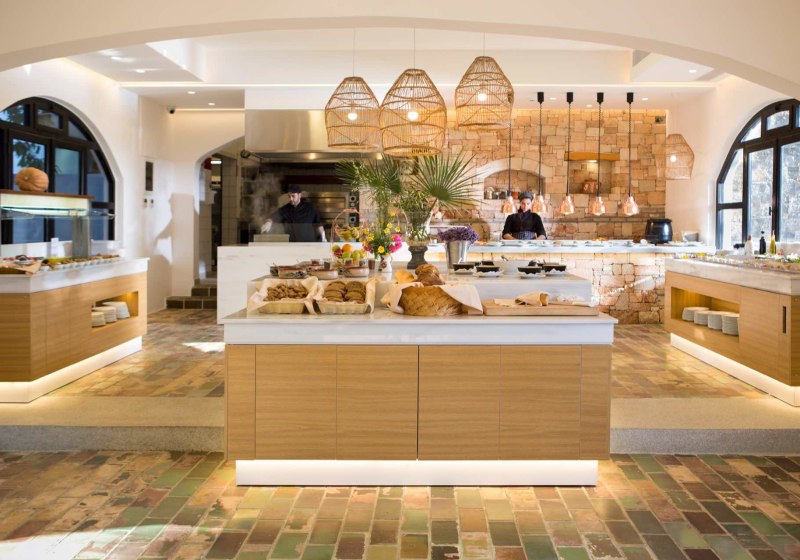 Ihr esst im Restaurant mit Außenbereich, wo das Team beim Show-Cooking Einblicke in die Zubereitung gewährt. Das verleiht den Mahlzeiten eine direkte, frische Note. An der Bar holt Ihr Euch einen Drink, zwischendurch versorgt Euch der Trinkbrunnen unkompliziert mit Wasser.