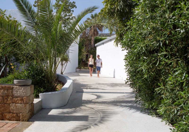 Abends führt der Weg eher zur Bar oder auf die Terrasse als zur Bühne. Gespräche, ein gutes Buch, vielleicht ein Blick ins Feuer der Lobby – das ist die Tonlage. So entsteht eine klare Alternative zu Animation und Dauerbeschallung. Wer Trubel sucht, hat ihn im Zentrum von Malia in Reichweite; im Hotel selbst dominiert Zurückhaltung und ein gemächlicher Rhythmus.