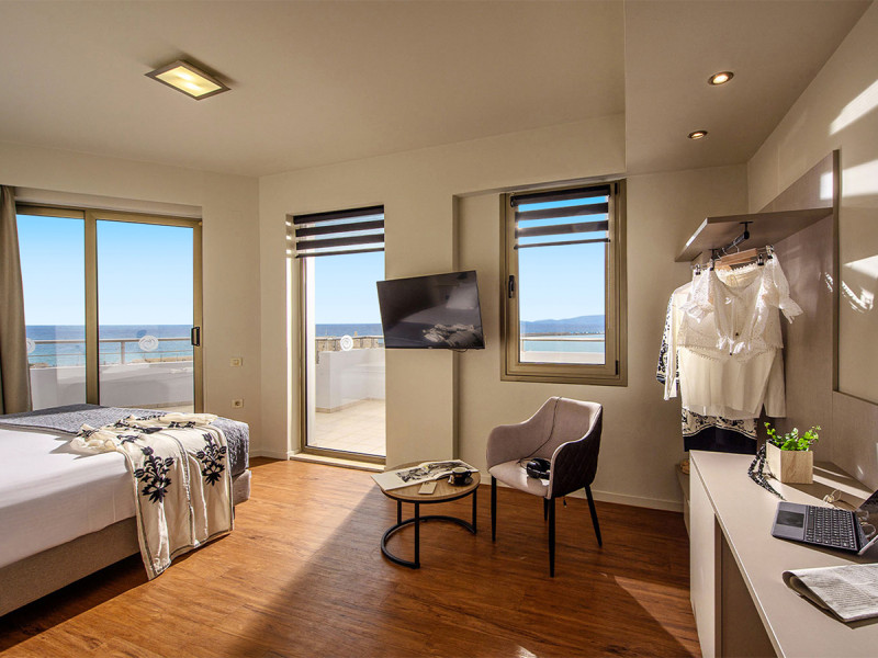Marin Hotel steht für zentrale Lage, klare Services und ein Frühstück über den Dächern von Heraklion. Mit Blick zur venezianischen Festung beginnt Ihr den Tag fokussiert, mobil und gut vernetzt – ob für Stadterkundung oder Geschäftstermin.