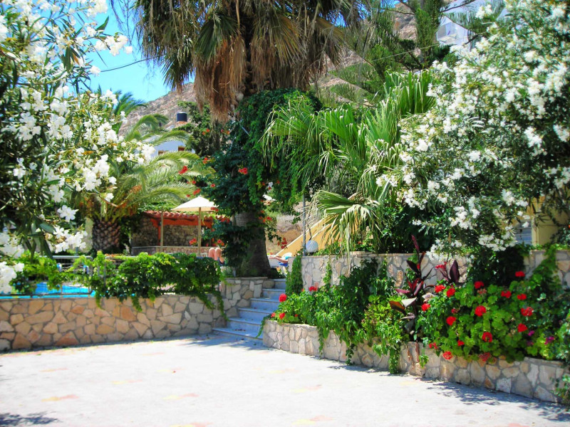 Im Außenbereich warten Süßwasserpool, Sonnenterrasse und Garten; Liegen und Sonnenschirme am Pool sind inklusive. Kreditkarten werden nicht akzeptiert, also plant die Bezahlung entsprechend. Mietwagenverleih ist ausgewiesen – ideal, wenn Ihr Kreta flexibel erkunden möchtet. Highlight: Inklusive Pool-Liegen und -Schirme für entspannte Stunden.