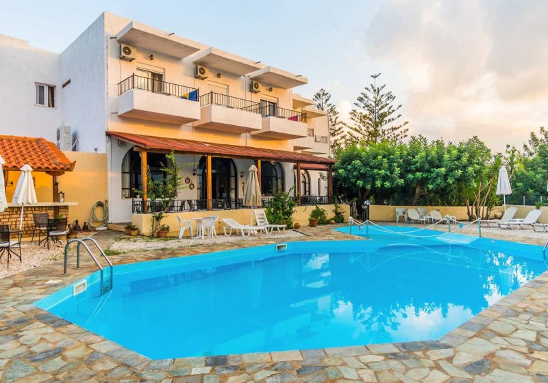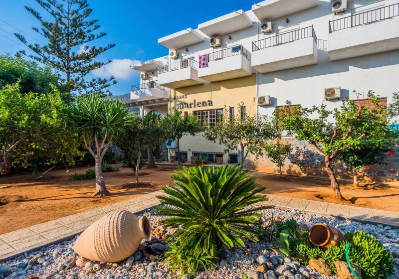 Marlena steht für ruhige Tage in Stalis, 350 Meter vom Sandstrand und mit klarer, erwachsener Ausrichtung. Ihr nutzt 24‑Stunden‑Rezeption, WLAN, Parkplätze und Minibücherei, entspannt am Außenpool mit Liegen und Schirmen inklusive und schätzt die kurze Distanz zum Meer.