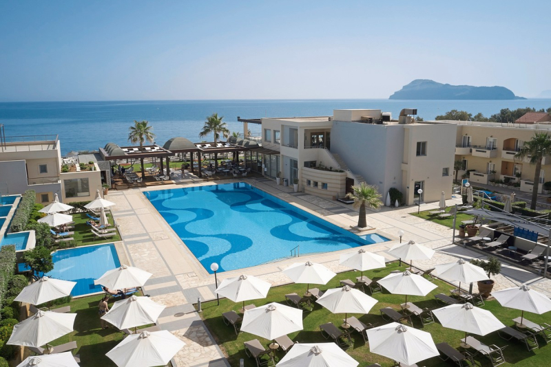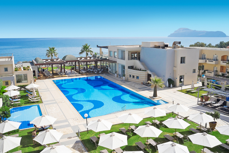 Das Minoa Palace Resort ist ein luxuriöses 5-Sterne-Resort, das an der charmanten Küste von Kreta ruhig und direkt am Strand gelegen ist. Mit seinem geschmackvollen Design, dem freundlichen Service und der exquisiten Gastronomie bietet dieses Resort eine hohe Qualitätserfahrung für alle Gäste, die ein wenig Extra an Stil und Ambiente suchen. Der geräumige SPA-Bereich, der schöne Strand und die einzigartig gestalteten kleinen Innenhöfe laden zum Entspannen und Erholen ein.