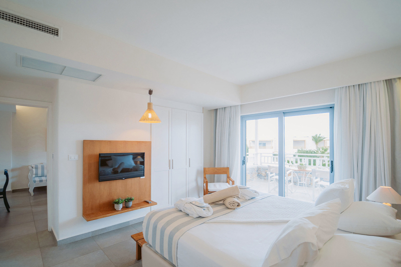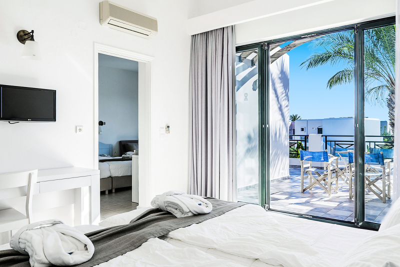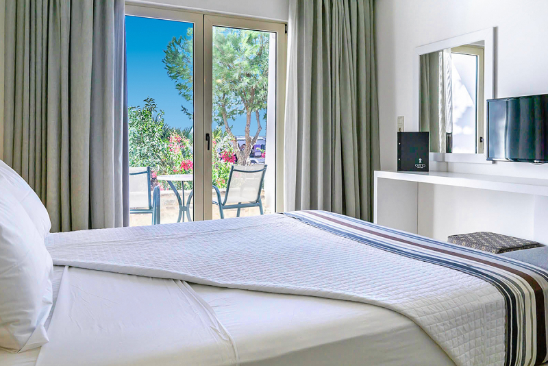 Die Zimmer des Ostria Resort & Spa sind mit allem Komfort ausgestattet. Sie bieten unter anderem ein Zustellbett, Klimaanlage, Balkon, Badezimmer mit Bademantel und Badewanne und getrennte Schlafzimmer. Die Zimmer sind außerdem mit Kindergitterbett, Doppelbett, Kühlschrank, Haartrockner, Internetzugang, Sitzecke und Minibar ausgestattet. Barrierefreie Zimmer sind ebenfalls vorhanden.