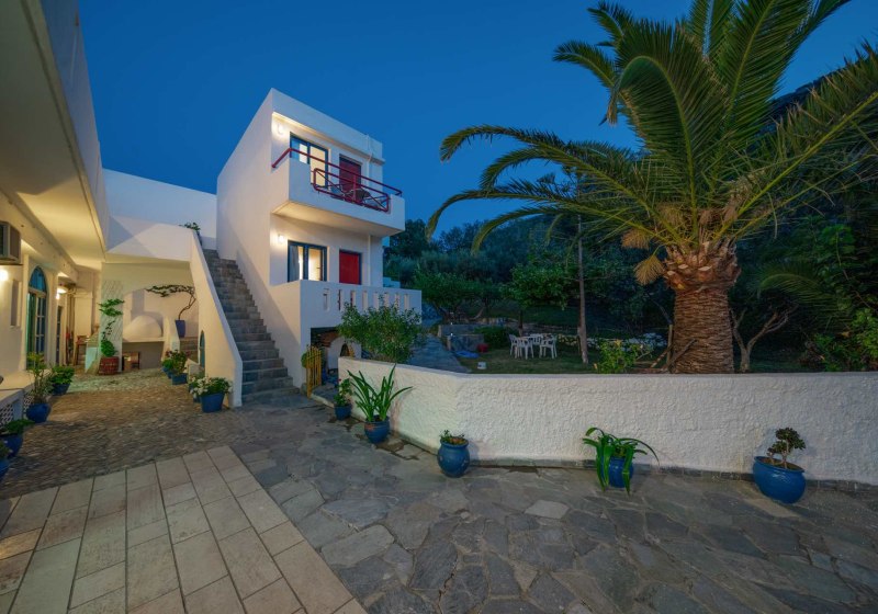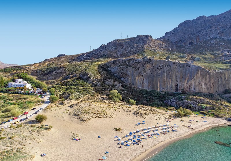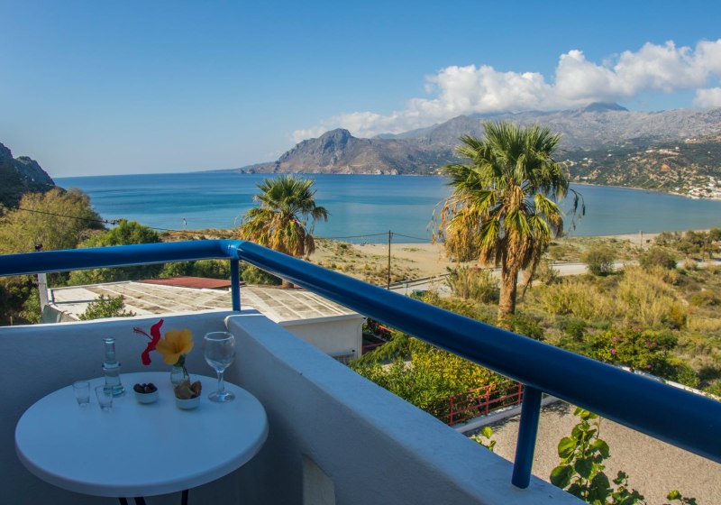 Die Lage spricht für sich: direkt am Strand von Plakias mit Blick auf das Libysche Meer. Nach Plakias spaziert Ihr rund zehn Minuten. Rethymnon liegt etwa 36 Kilometer entfernt, der Flughafen Chania circa 96 Kilometer und der Flughafen Heraklion etwa 114 Kilometer. Das Umfeld wirkt ruhig und entspannt.