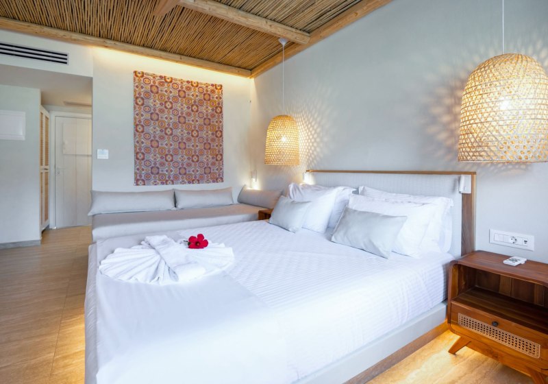 Eure Zimmer kombinieren zweckmäßigen Komfort mit Strandnähe. Bad oder Dusche/WC, Pflegeprodukte, Föhn und Slipper stehen bereit. Für kühle Köpfe sorgen Klimaanlage und Deckenventilator. 28" Smart-TV, Safe, Kühlschrank, Wasserkocher und Espressomaschine decken den Alltag ab, Strandhandtücher erleichtern spontane Badepausen.