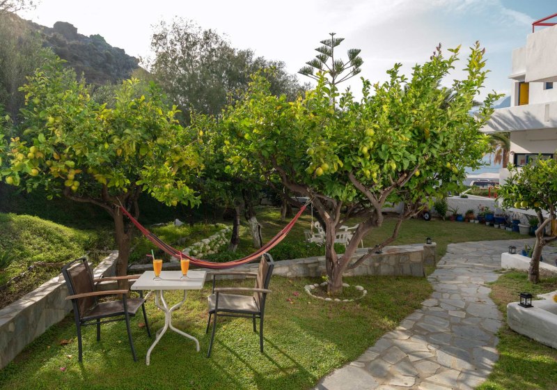 Wer es ruhiger mag, zieht Bahnen im Außenpool oder spaziert nach Plakias. Mit Mietwagen oder Velo erweitert Ihr den Radius entlang der Südküste. Die Mischung aus Wassersport, kurzer Distanz ins Dorf und verlässlicher Infrastruktur passt zu entspannt-aktiven Tagen am Meer.