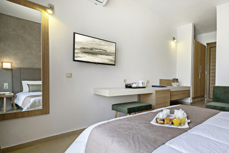 Die Zimmer im Nefeli Hotel sind ansprechend und freundlich gestaltet. Alle Zimmer sind mit Klimaanlage, Sat-TV, WLAN, Minikühlschrank und Kaffee-/Teezubereiter ausgestattet. Es gibt verschiedene Zimmeroptionen, darunter Doppelzimmer, Superior Doppelzimmer und Familienzimmer mit einem Schlafzimmer.
