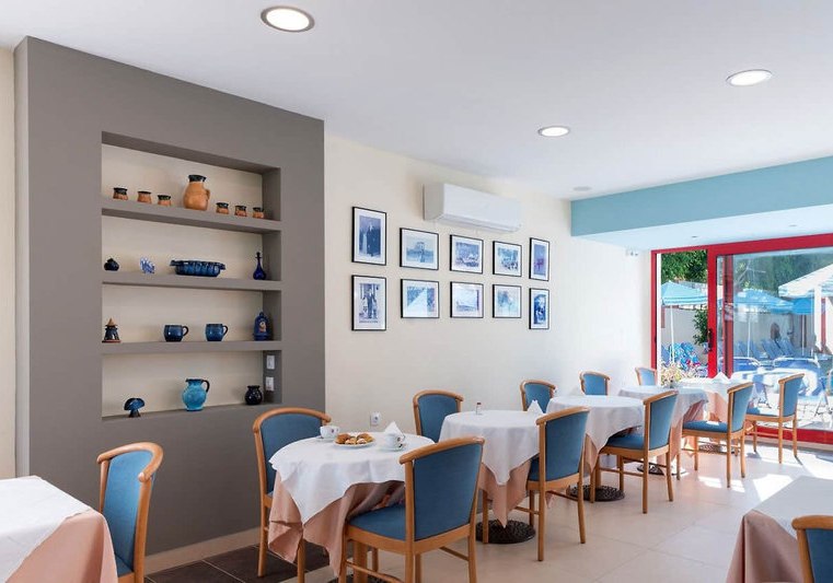 Im Restaurant erwartet Euch griechische und regionale Küche, serviert als Buffet und à la carte. Die Bewertungen zur Kulinarik fallen sehr gut aus, was frische Zubereitung und stimmige Auswahl unterstreicht. Eine Bar versorgt Euch tagsüber und am Abend mit kühlen Getränken und kleinen Auszeiten am Rand des Geschehens.