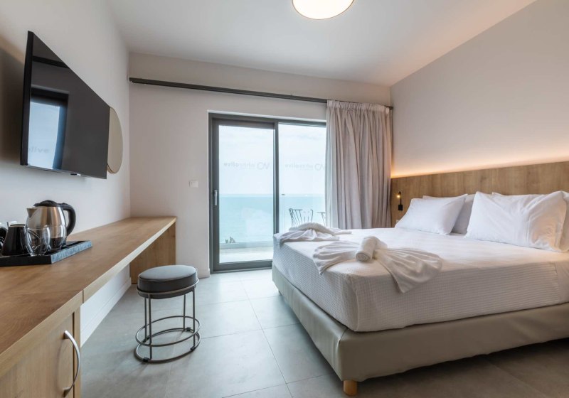 In Sfakaki bei Rethymnon liegt White Olive Elite Rethymno direkt am Meer, mit direktem Zugang zum Strand. Zur Altstadt von Rethymnon sind es etwa 9 km, die Bushaltestelle erreicht Ihr nach rund 200 m. Damit verbindet Ihr ruhige Strandtage mit unkomplizierten Abstechern in die Stadt.