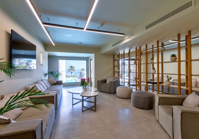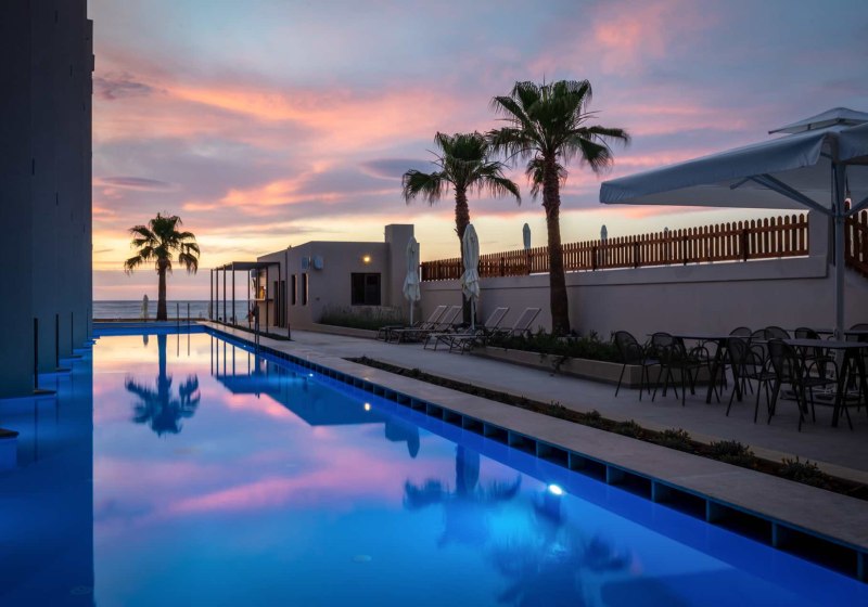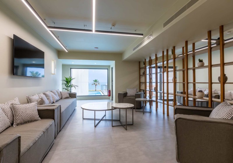 Im White Olive Elite Rethymno wohnt Ihr direkt am Meer von Sfakaki, in einem Haus, das 2021 komplett renoviert wurde. Klare Linien, helle Flächen und viel Licht prägen die Bereiche von Lobby bis Lounge-Terrasse. Zwei Swimmingpools und weitläufige Sonnenterrassen strukturieren den Tag zwischen Baden, Lesen und kurzen Wegen zum Strand.