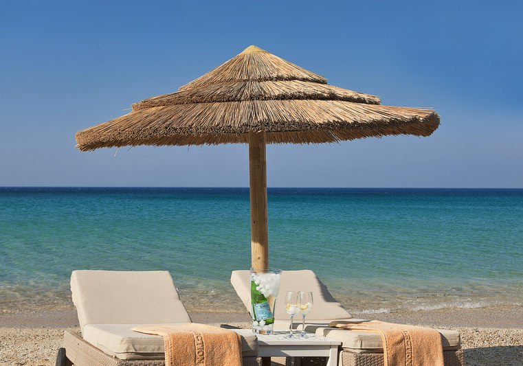 - Strandkomfort: Liegen, Badetücher und Sonnenschirme am Strand.