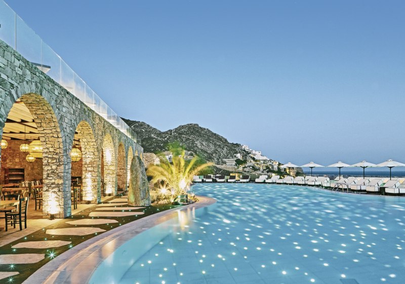 Royal Myconian verbindet Privatbucht, kurze Stranddistanz und zwei Salzwasserpools mit einem strukturierten Servicepaket. Restaurant mit Terrasse, Bars und ein Spa mit Anwendungen bilden den ruhigen Rahmen, während Kinderbereiche und Betreuung für planbare Familientage sorgen.