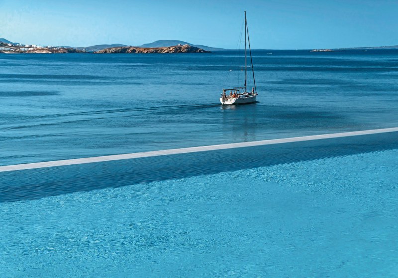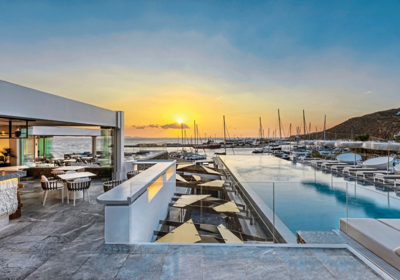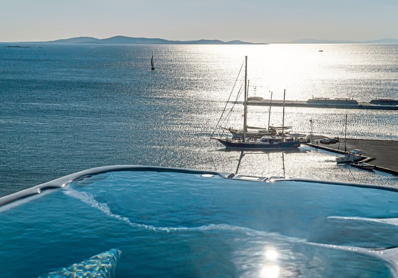 Im Mykonos Riviera Hotel & Spa trefft Ihr auf ein Haus, das maritime Nähe und kultivierte Ruhe verbindet. Direkt am Wasser gelegen, blickt Ihr auf die Schiffe der Tourlos Marina & Port, während die Architektur moderne Klarheit mit wohnlicher Wärme verknüpft. Der Rhythmus des Hafens begleitet Euch subtil, ohne den privaten Rückzugscharakter zu stören.