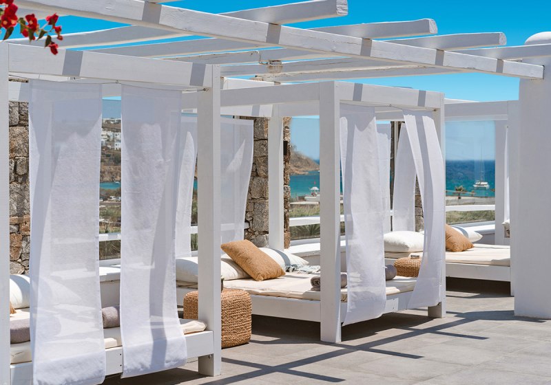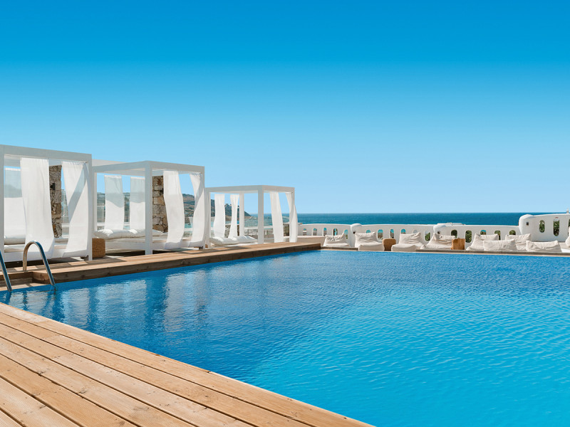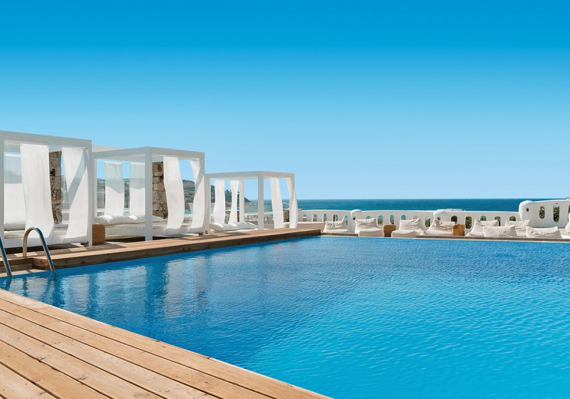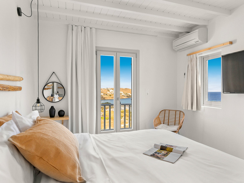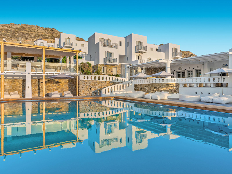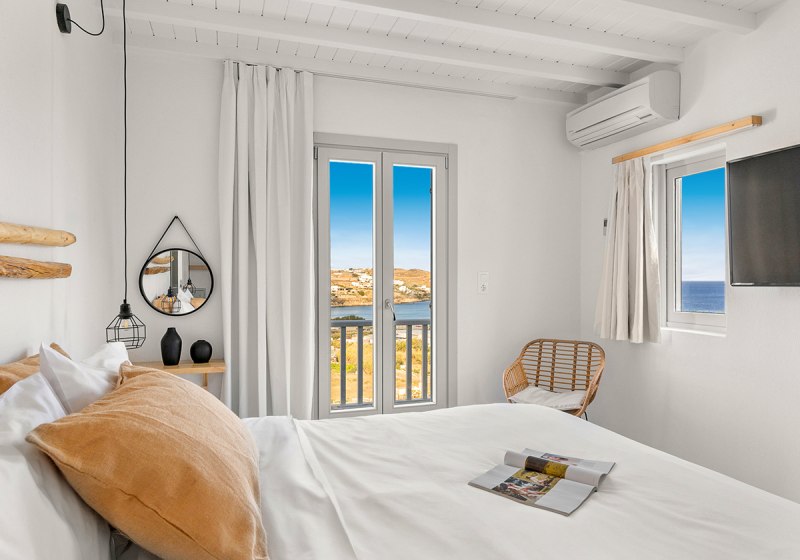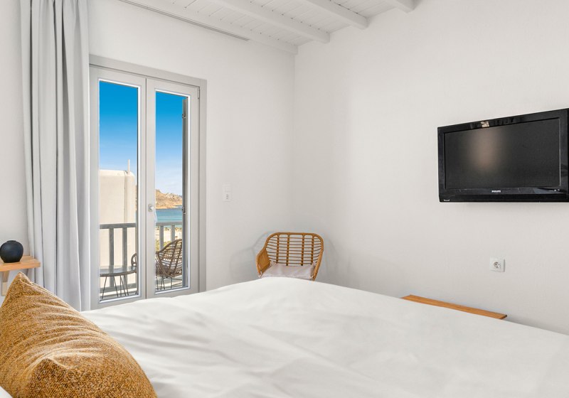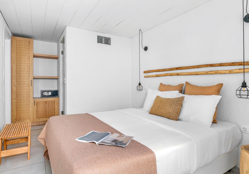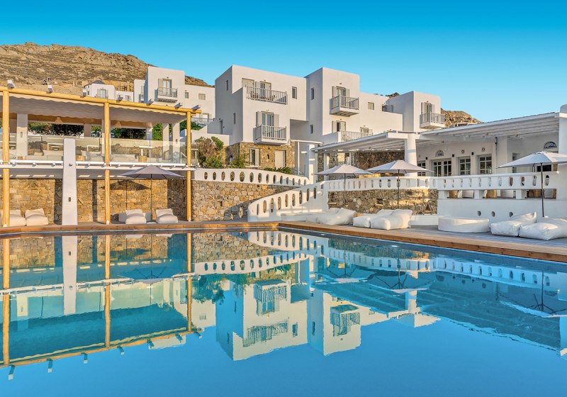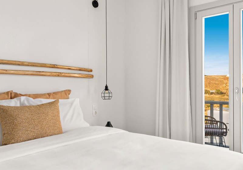 Ihr wohnt im nördlichen Teil der Insel, etwa 100 Meter vom Strand Kalo Livadi entfernt. Der Hafen liegt rund 10 Kilometer entfernt, sodass Ihr An- und Abreise sowie Ausflüge klar strukturieren könnt. Die Nähe zum Meer prägt Euren Tagesrhythmus: ein kurzer Weg zum Strand am Morgen, zurück zum Pool für eine Pause am Mittag, abends entspannt im Hotelrestaurant.