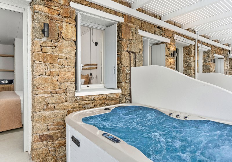 Einige Zimmerkategorien bieten auf der Terrasse einen privaten Jacuzzi – ideal für ungestörte Auszeiten im Freien. Ein klassischer Spa- oder Saunabereich wird nicht ausgewiesen; der Fokus liegt auf Badeerlebnis und Erholung an der frischen Luft. Highlight: Privater Jacuzzi in ausgewählten Zimmern.