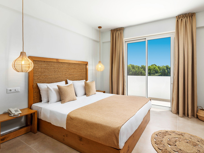 In den Zimmern erwartet Euch ein klares Setup mit Kingsize-Bett, Klimaanlage und Smart-TV. Das Bad bietet eine begehbare Regendusche, WC und Pflegeprodukte. Minikühlschrank, Safe, Schreibtisch, offener Kleiderschrank sowie WLAN und Kaffee-/Teezubereiter runden den Komfort ab. Alle Einheiten verfügen über einen möblierten Balkon oder eine Terrasse.