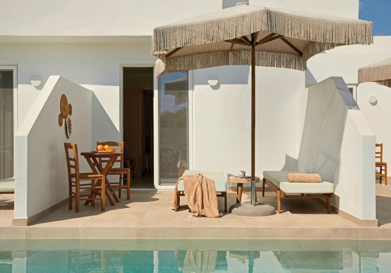 Mit Open-Air-Trainingsbereich, Tischtennis und Boccia bleibt Ihr in Bewegung; Zimmeroptionen reichen vom Gemeinschaftspoolzugang bis zum Privatpool. Für Eure Strandtage in Kiotari findet Ihr hier eine klare, angenehme Basis, die Nähe, Service und Flexibilität zuverlässig zusammenführt.