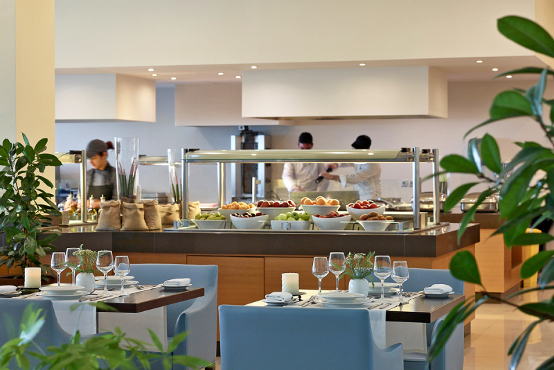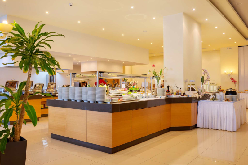 Im Apollo Blue Hotel bieten wir verschiedene gastronomische Optionen, um den Geschmack unserer Gäste gerecht zu werden. Sie können Ihren Tag mit einem amerikanischen Frühstücksbuffet beginnen und anschließend ein Mittags- oder Abendessen im Buffetrestaurant oder in der à-la-carte-Taverne genießen. Darüber hinaus haben unsere Gäste die Möglichkeit, Snacks, Kaffee und Kuchen zwischen den Mahlzeiten zu genießen.