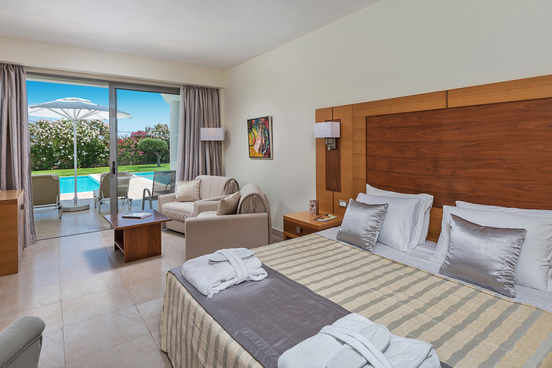 Die Zimmer im Apollo Blue Hotel sind speziell gestaltet, um den Gästen höchsten Komfort zu bieten. Sie verfügen über Bademäntel, Flachbildfernseher, Fön, Kaffee-/Teezubereiter und einen Safe. Alle unsere Zimmer haben Balkon oder Terrasse, und einige bieten sogar Meerblick und einen privaten Pool.