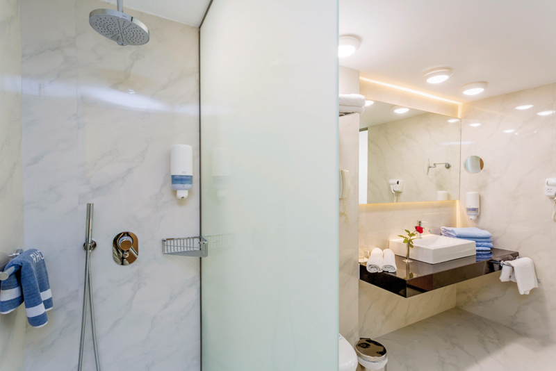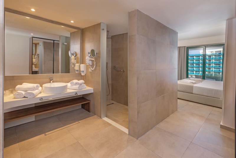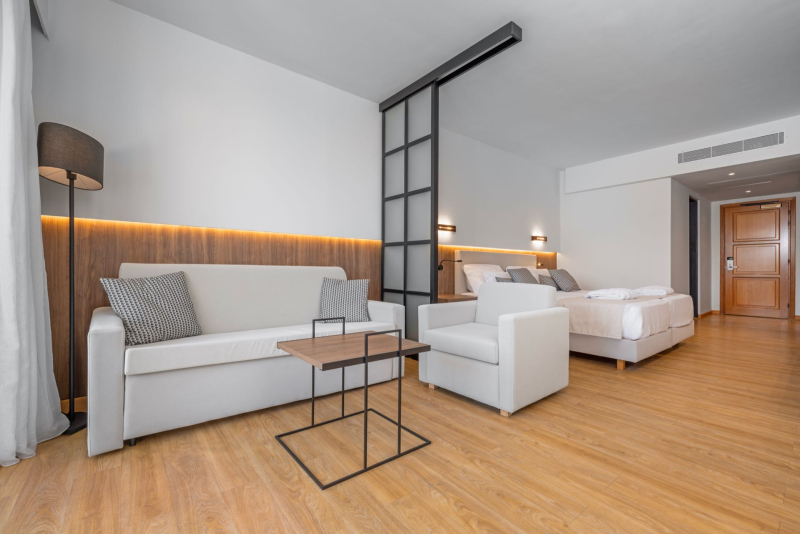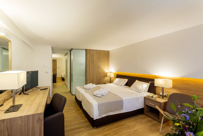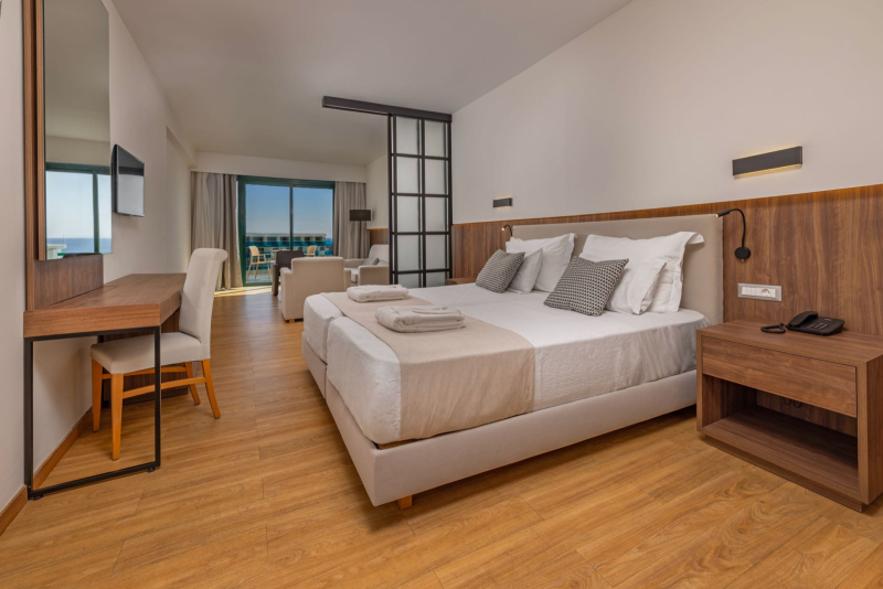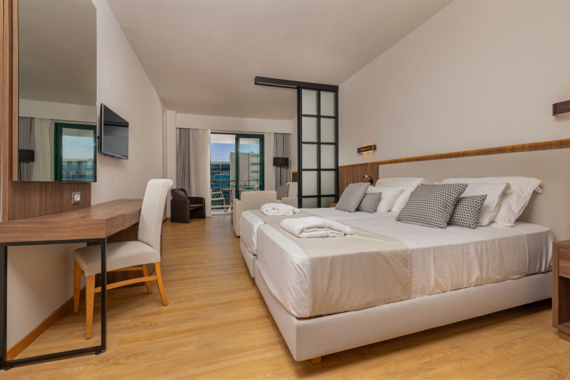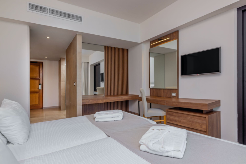 Unsere Zimmer sind mit Klimaanlage, Balkon, Badezimmer und Teppichboden ausgestattet. Sie bieten Meerblick, eine Dusche, einen Fernseher und Internetzugang. Familienzimmer sind ebenfalls vorhanden und auf Wunsch steht ein Kinderbett zur Verfügung.