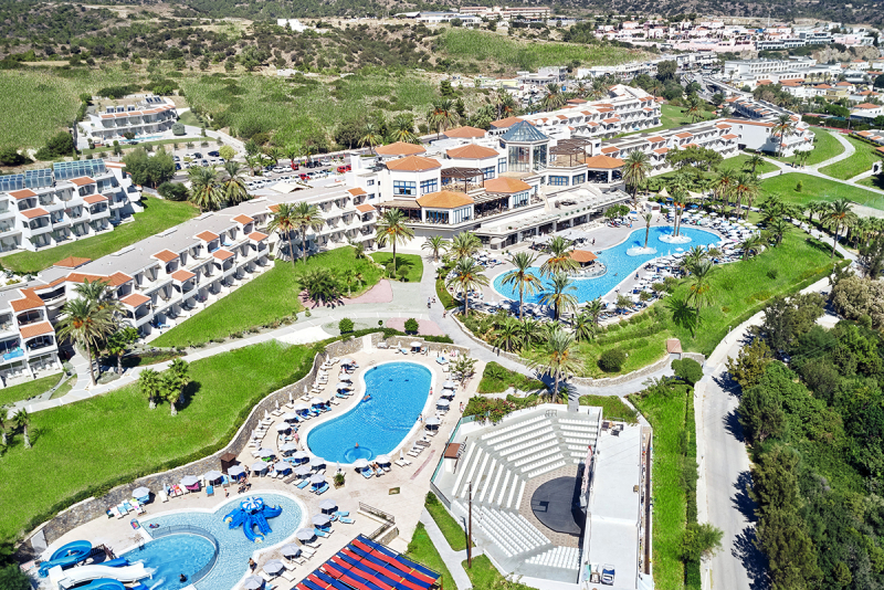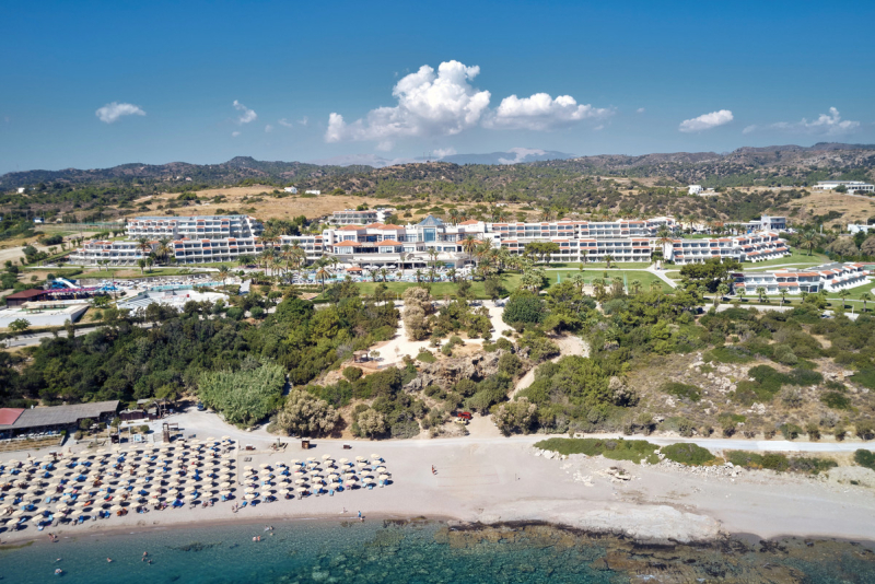 Das Hotel befindet sich in einer ruhigen Bucht und bietet einen direkten Zugang zum Sand-/Kiesstrand 'Lagouni', der über Treppen zu erreichen ist. Nur 60 km vom Flughafen Diagoras und 15 km vom Ort Lindos entfernt, ist das Hotel sowohl für ruhige als auch für lebendige Urlaubstage ideal gelegen. Einkaufsmöglichkeiten und Restaurants/Bars sind nur 500 m entfernt.
