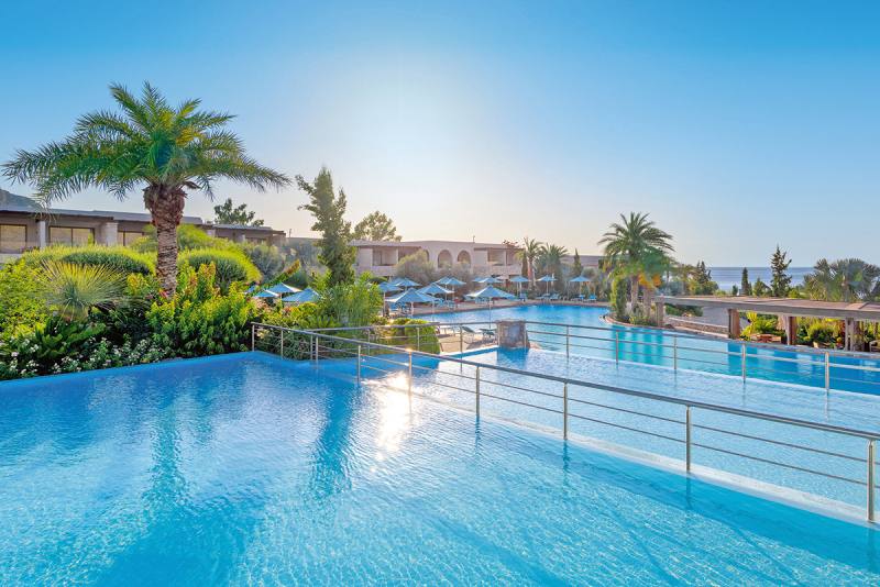 Das Aquagrand Artistic Luxury Beach Resort ist ein luxuriöses 5-Sterne-Resort, das sich durch sein elegantes Design und seine exzellente Lage direkt am Strand von Rhodos auszeichnet. Mit insgesamt 136 Zimmern und Suiten bietet es eine komfortable und stilvolle Unterkunft, perfekt für Erwachsene, die nach einer ruhigen und erholsamen Auszeit suchen. Das Hotel verfügt über eine breite Palette von Einrichtungen und Dienstleistungen, darunter vier Restaurants, drei Bars, zwei Swimmingpools und ein Wellnessbereich.
