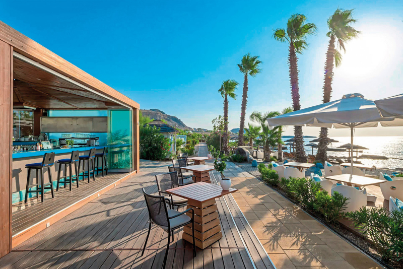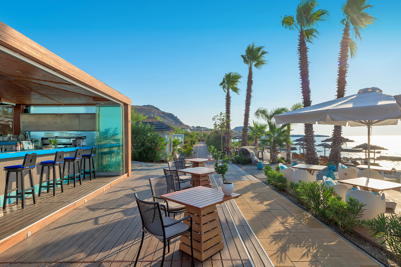 Das Aquagrand Artistic Luxury Beach Resort überzeugt mit vier Restaurants, darunter das Meeresfrüchtespezialitätenrestaurant 'Blue Fin', das italienische 'Olivino Pool Bar-Restaurant', das Buffetrestaurant 'Pentapolis' mit griechisch-mediterraner Küche und das 'Sensia Beach Bar-Restaurant'. Es gibt auch drei Bars, darunter eine Loungebar, eine Poolbar und eine Strandbar.