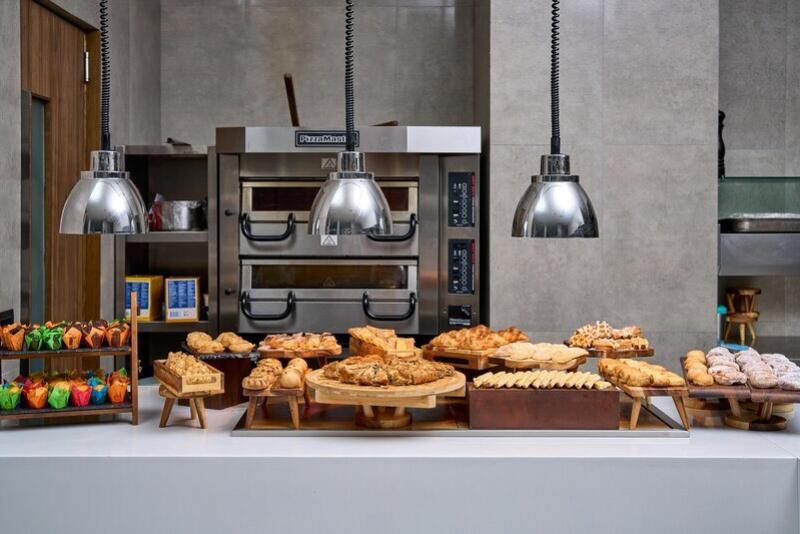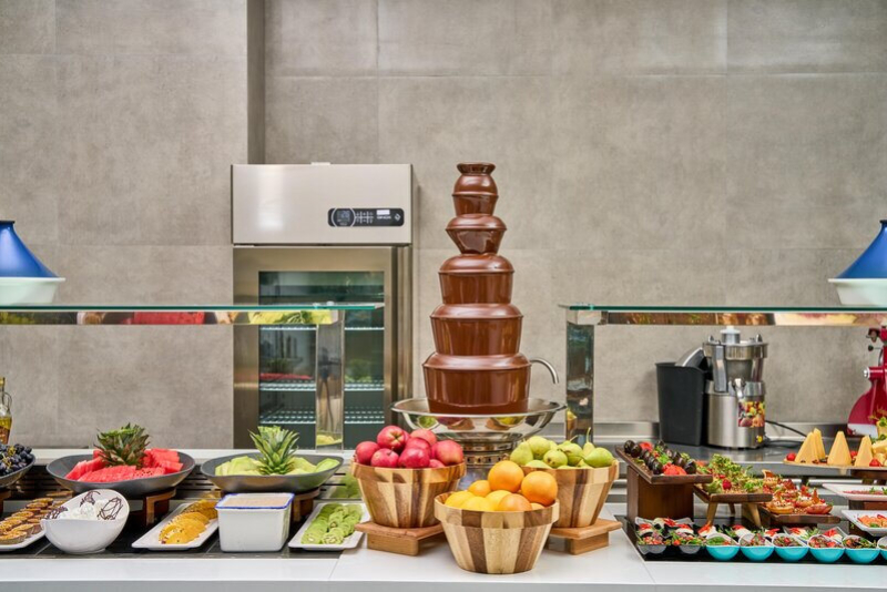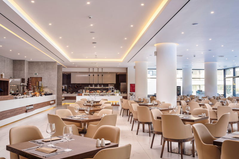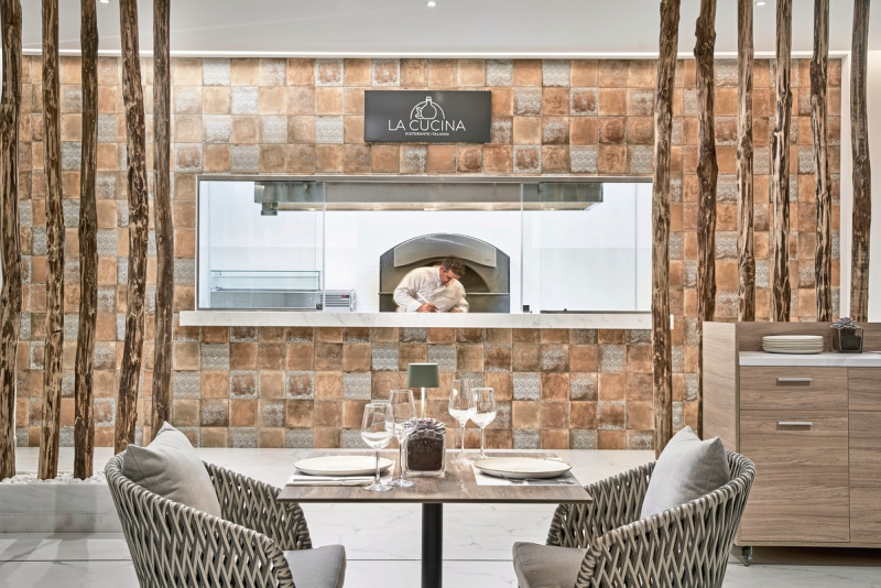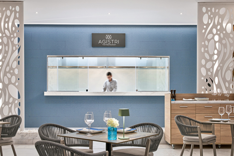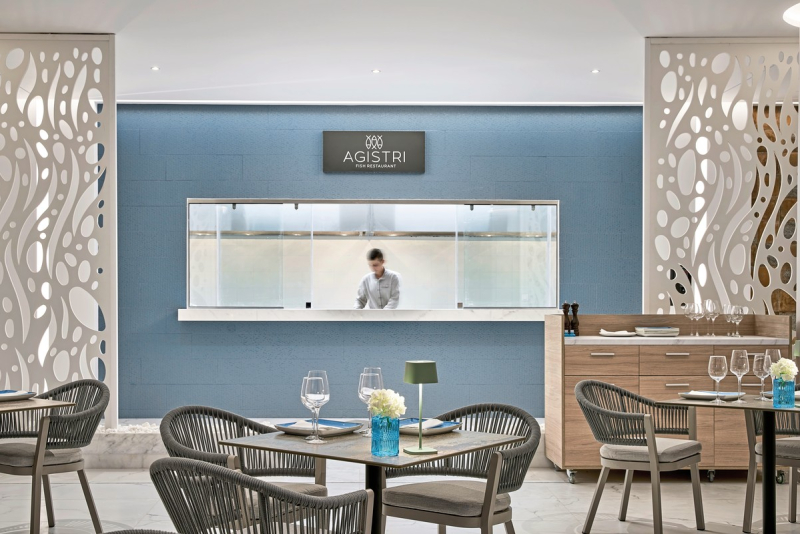 Jeden Morgen wird ein reichhaltiges Frühstück angeboten, an dem sich die Gäste für den kommenden Tag stärken können. Des Weiteren gibt es sowohl zum Mittagessen wie auch zum Abendessen unterschiedliche internationale, griechische, regionale Gerichte wie auch verschiedene Speisen aus dem Balkan. Wer sich zwischen den Mahlzeiten stärken will, kann diverse kalte und warme Snacks wie auch alkoholische und alkoholfreie Getränke an der Bar zu sich nehmen.