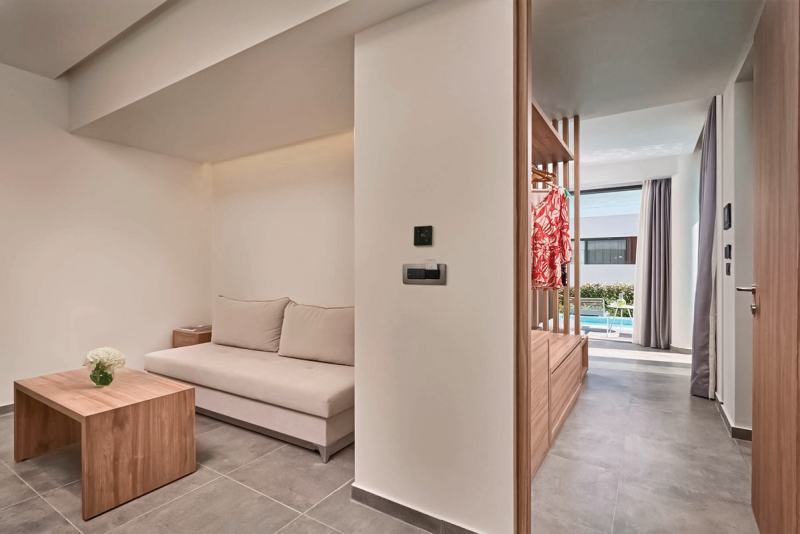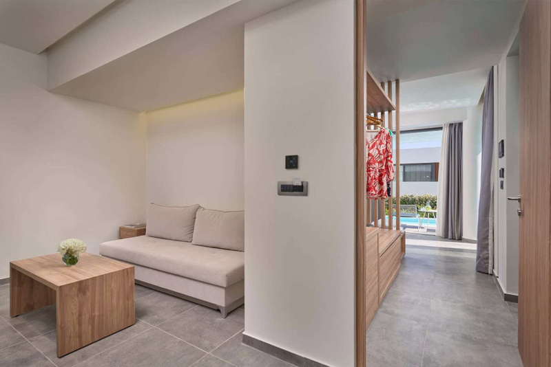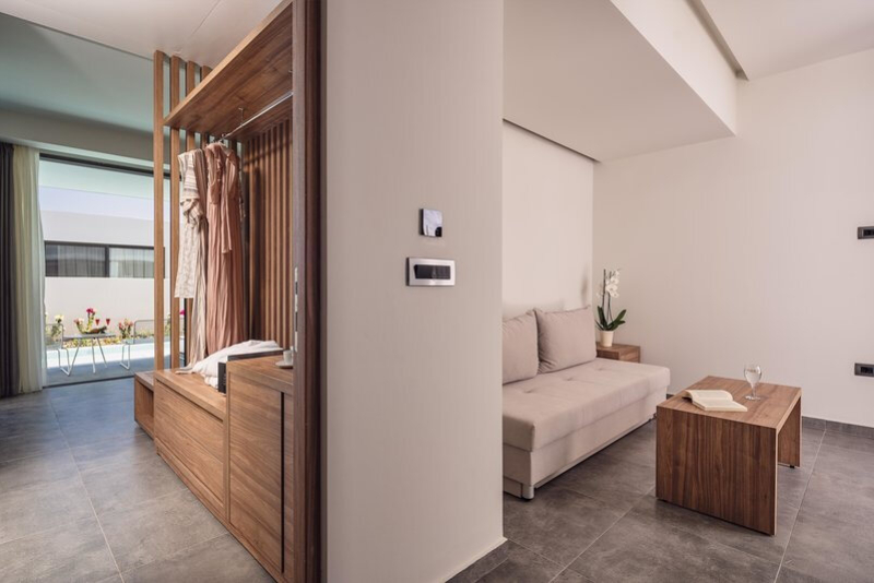 Die Doppelzimmer Deluxe sind besonders hochwertig eingerichtet. Sie sind in Richtung Garten oder zum Pool ausgerichtet und können ebenfalls mit seitlichem Meerblick gebucht werden. Wer es etwas edler mag, kann eine Suite beziehen. Denn diese hat unter anderem auch ein separates Schlafzimmer und auf dem Balkon steht ein beheizbarer Whirlpool.