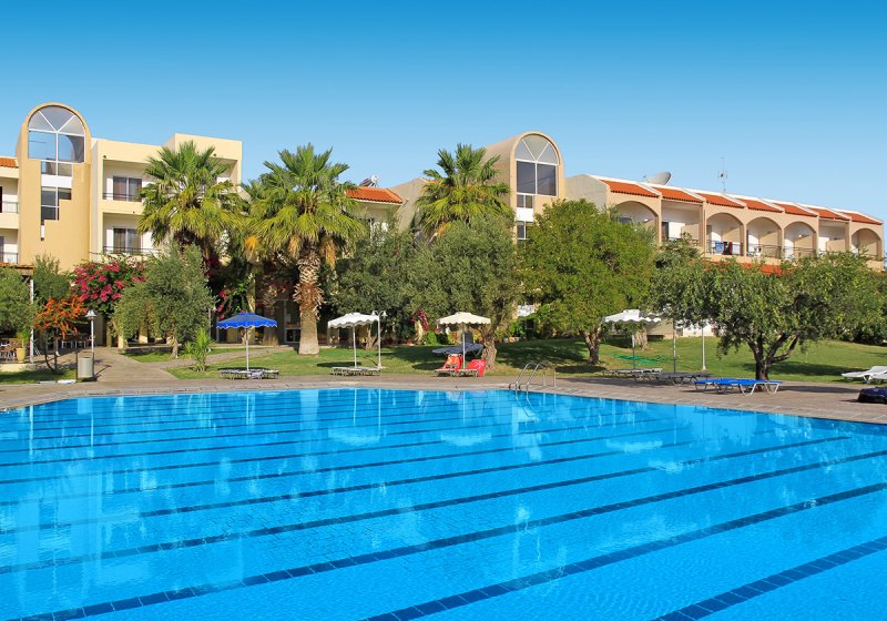 Im Marianna Palace Hotel wohnt Ihr in Kolymbia auf Rhodos in einer gepflegten Gartenanlage mit großzügigem Außenpool, Sonnenterrasse und Liegewiese. Die Atmosphäre wirkt entspannt und übersichtlich: kurze Wege, klare Strukturen, freundlicher Empfangsbereich mit Rezeption und WLAN. Als Strandhotel mit Landeskategorie 4 Sterne richtet sich das Haus an Strandurlauber. Familien freuen sich über Kinderpool und Spielplatz, Aktivere über Billard und weitere Sportangebote. Wer Bewegung und Ruhe verbinden möchte, findet hier genau diese Balance, ohne Schnickschnack, aber mit Substanz.