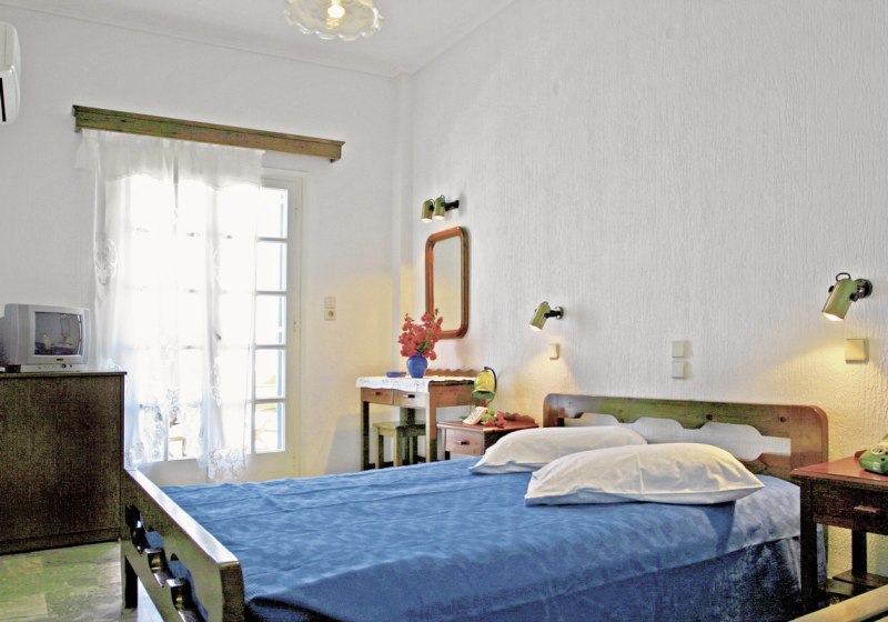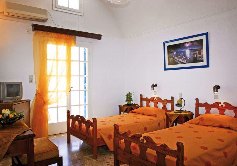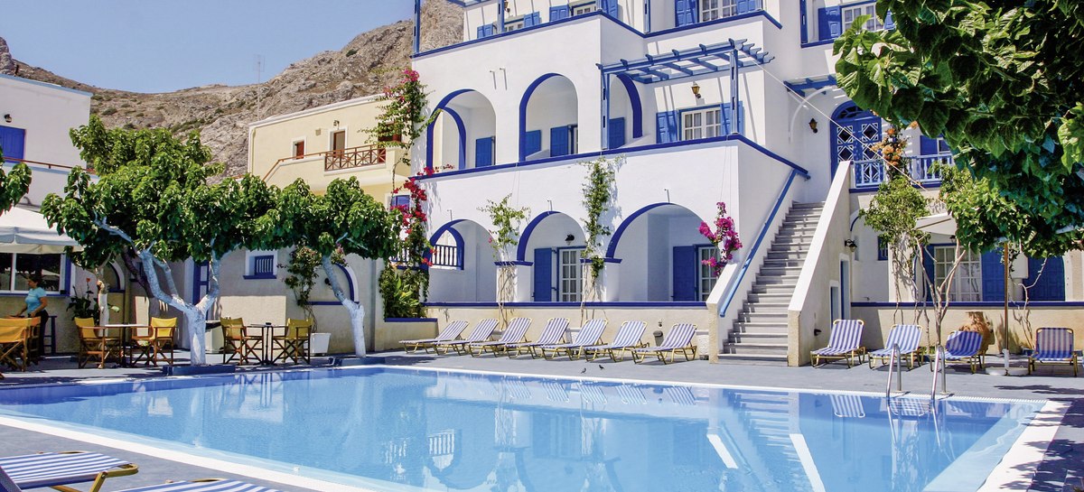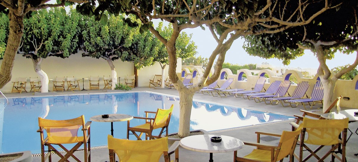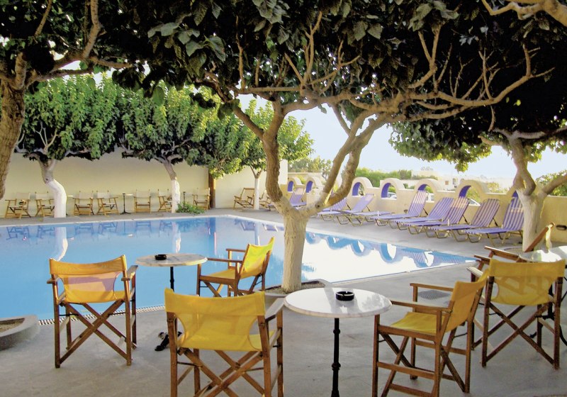 Der Tagesablauf ist geradlinig: Frühstück im dafür vorgesehenen Raum, danach ein Platz an Pool oder Strand, später eine Erfrischung an der Poolbar. Die Ausstattung setzt auf Funktionalität statt Aufwand, mit Rezeption, Fernsehecke und kostenpflichtigen Parkmöglichkeiten. Das ergibt ein stimmiges Setting für erholsame Tage auf Santorin. Highlight: Überschaubares 3-Sterne-Haus mit 35 Einheiten, ruhige Ortsrandlage und kurzer Weg zum Strand.