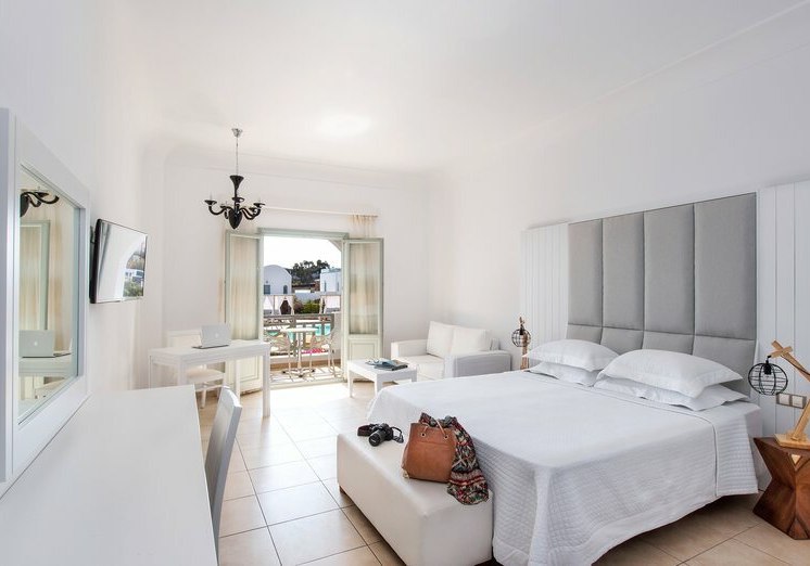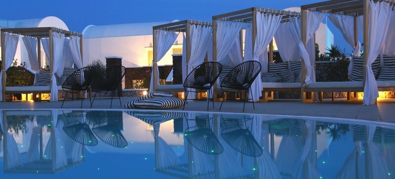 Im Astro Palace Santorini wohnt Ihr in einem ruhigen Haus unweit von Firas Zentrum, mit klarer Linienführung, gepflegten Außenbereichen und einem Gefühl von Diskretion. Der Außenpool mit Liegen und Schirmen bildet den lebendigen Treffpunkt, während das Spa und die Sonnenterrassen Raum für stille Stunden bieten.