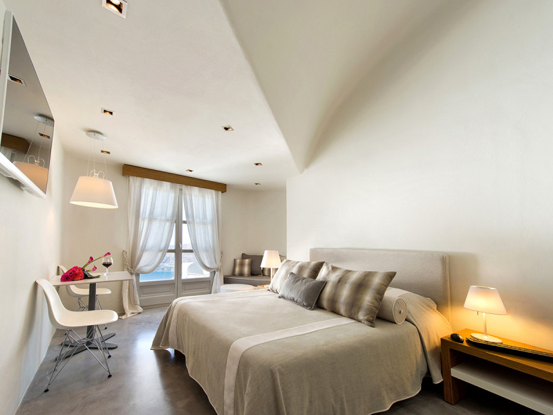 Im Avaton Resort & Spa wohnt Ihr in einem kleinen Adults-only-Hideaway mit nur neun Zimmern, das sich an Paare und ruhesuchende Genießer richtet. Am Kraterrand gelegen, blickt Ihr über Caldera und Ägäis. Der Tag beginnt entspannt am Pool oder mit Frühstück à la carte, bevor Ihr die Nähe zu Restaurants und Boutiquen nutzt.