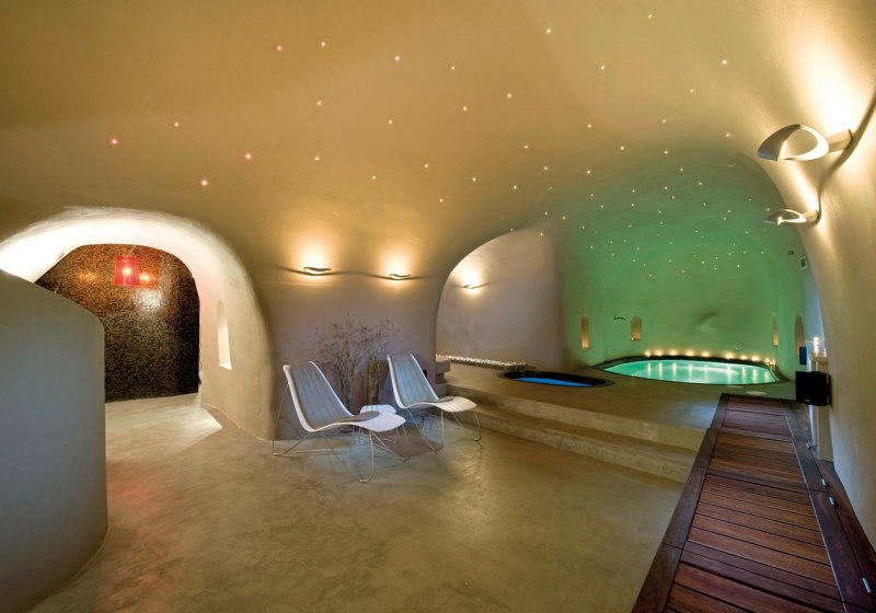 Im rund 160 Quadratmeter großen Spa in einer umgebauten Höhle findet Ihr Wärmebereiche mit Sauna und Dampfbad sowie einen Hydromassagepool. Das Setting ist reduziert und konzentriert sich auf Ruhe und Wasserwärme, fern von unnötiger Ablenkung.