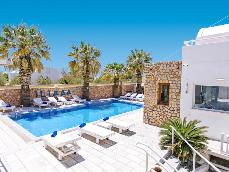 Im Hotel Iliada wohnt Ihr strandnah in Perissa und findet einen kompakten Rückzugsort mit klarer Ausrichtung: entspannt am Pool, wenige Minuten vom Meer entfernt, morgens ein kontinentales Frühstück. Die Atmosphäre ist unkompliziert, die Wege sind kurz, und Ihr richtet Euch den Tag flexibel zwischen Poolterrasse, Strand und dem Ortszentrum nach 800 Metern. Highlight: Strandnahes Refugium mit Pool und Frühstück, ideal für unabhängige Tage.