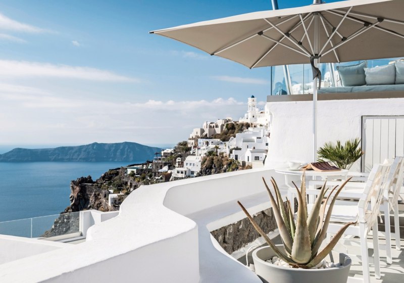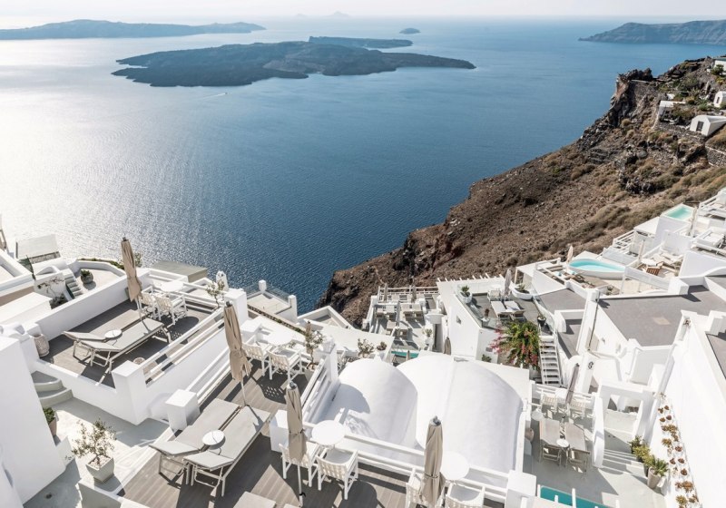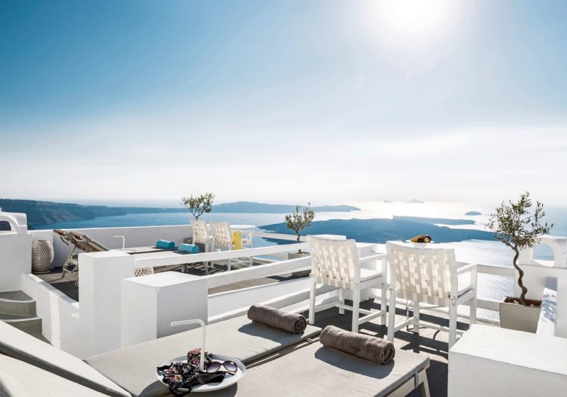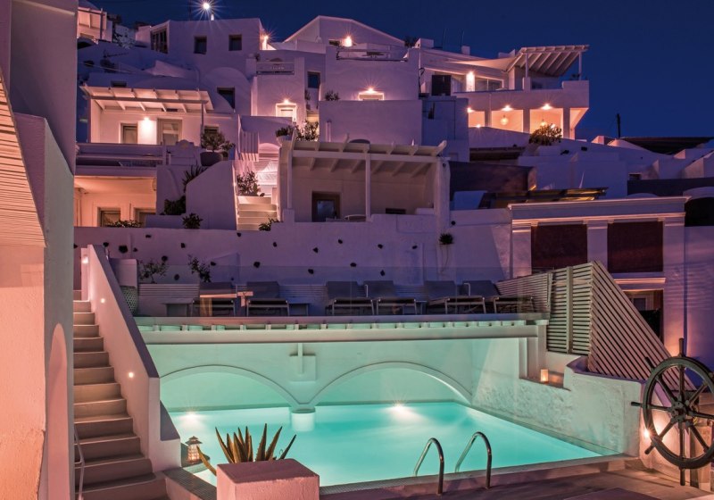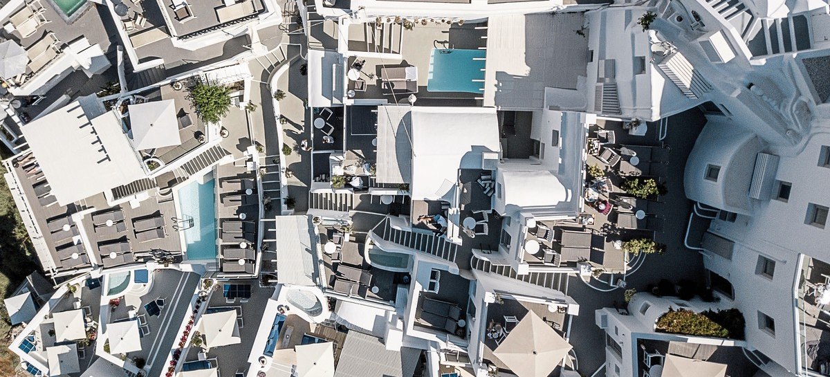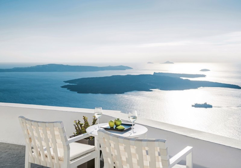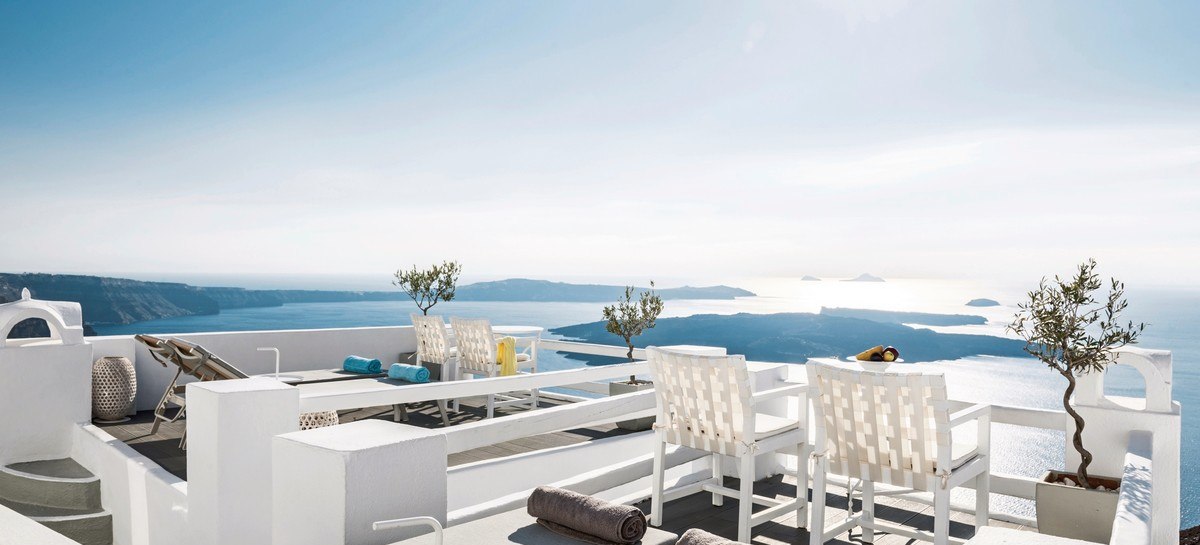 Die Adresse des Hotels lautet Imerovigli; 84700 Santorini.