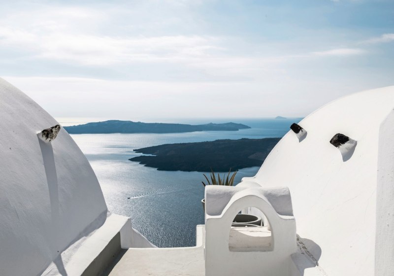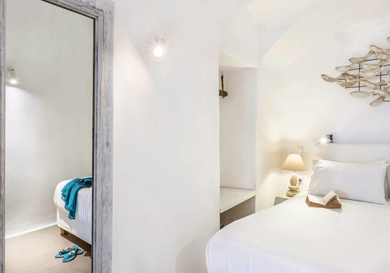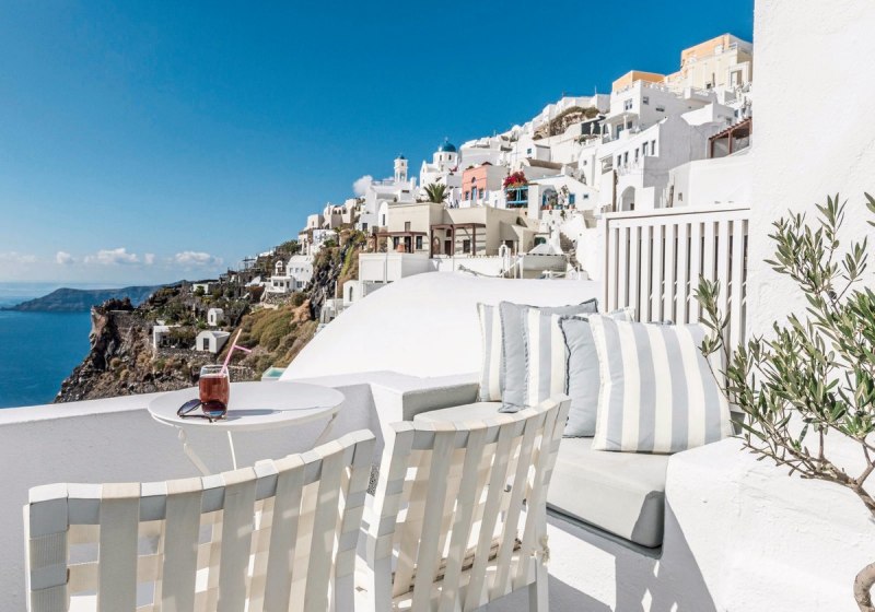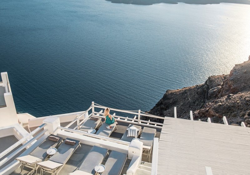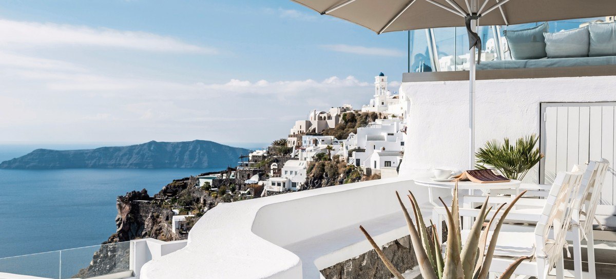 • Kraterrand-Setting: Ihr wohnt direkt am Rand der Caldera in Imerovigli.